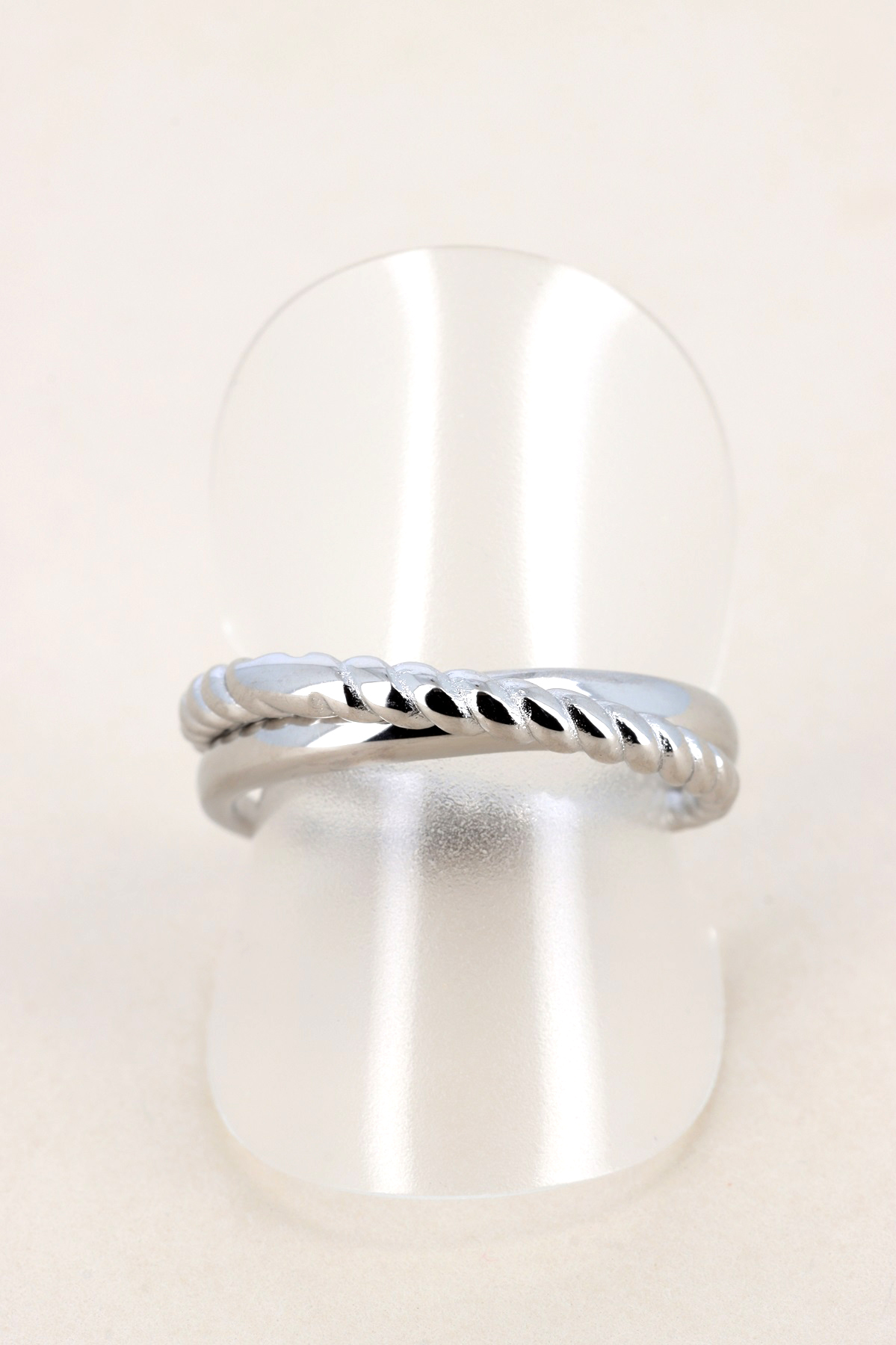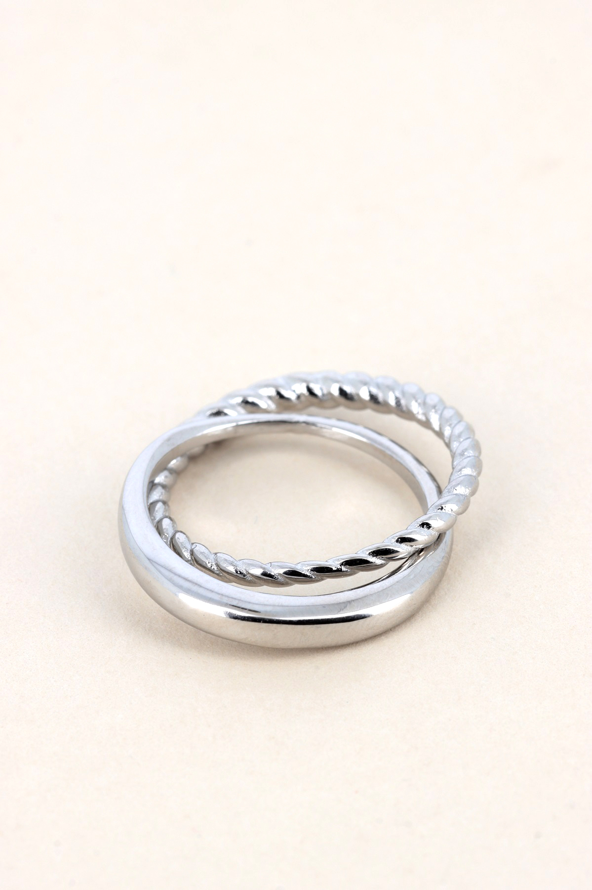 Bague double anneau, l'un torsadé; l'autre fuselé