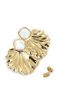 Boucles tiges pavé de pierre nacrée & demi fleur striée