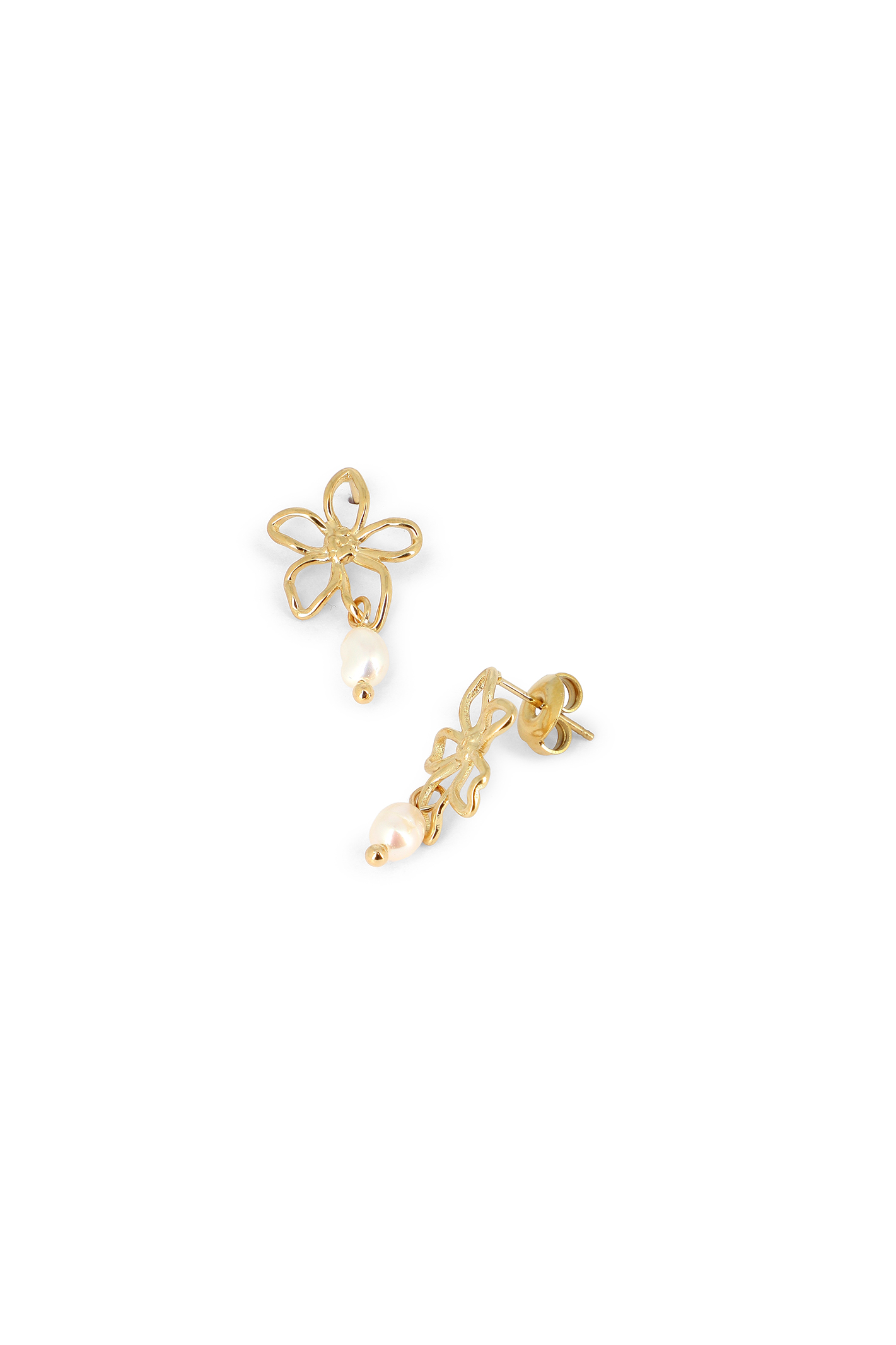 Boucles tiges fleurs creuses & pampilles perles