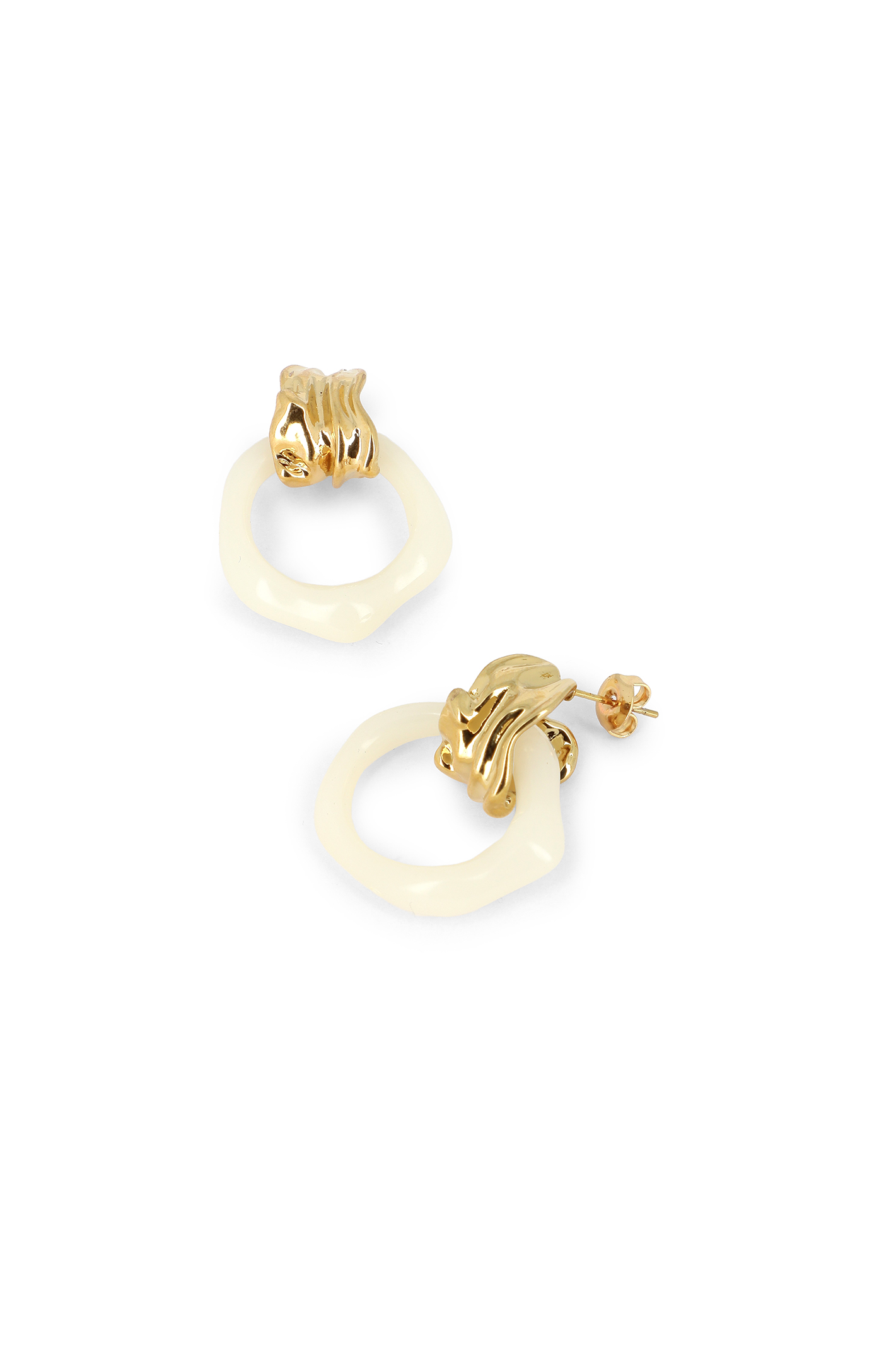 Boucles créoles ouvertes & texturées, pendants ovales en acétate blanc