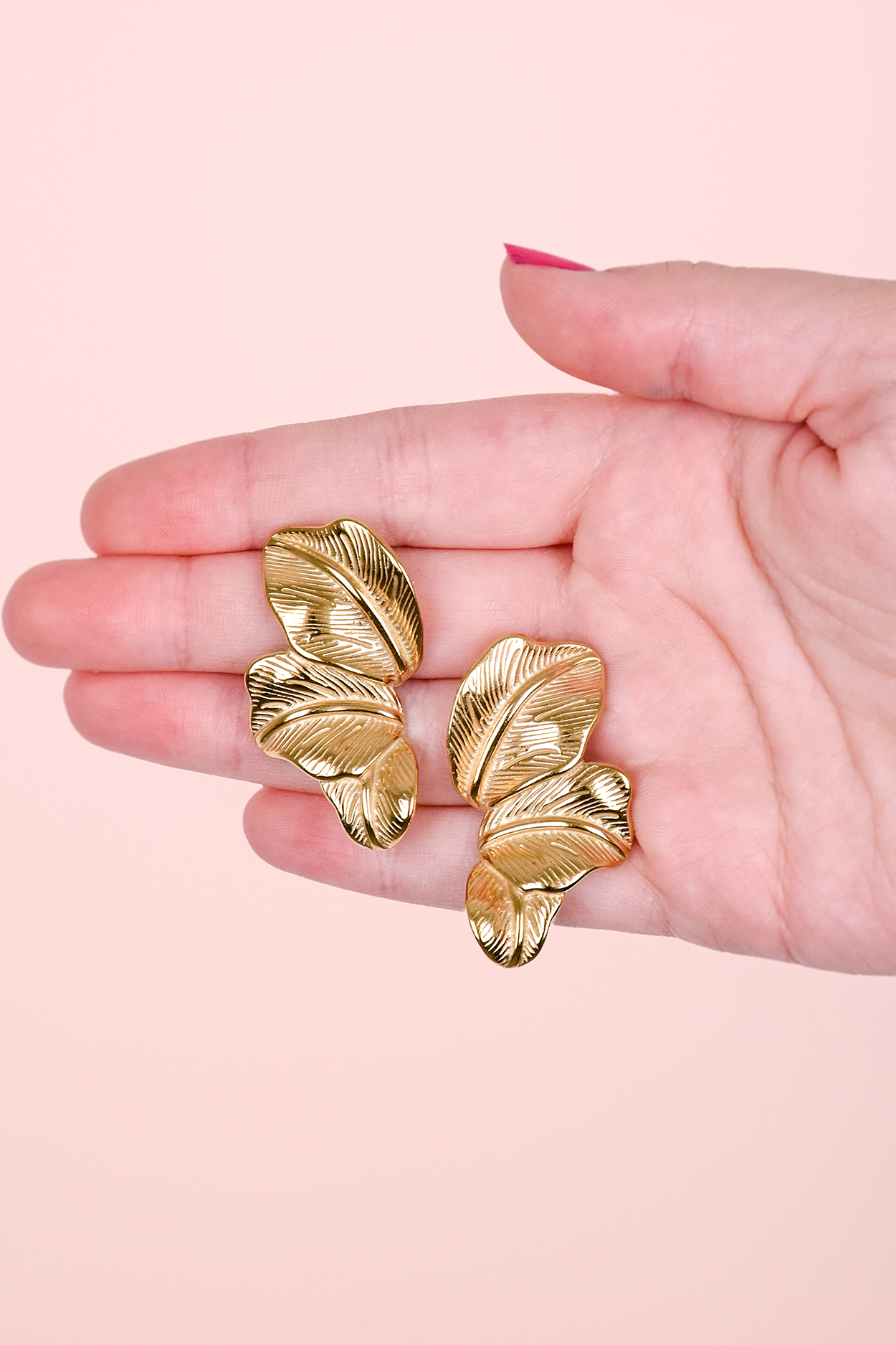 Boucles pendantes trois feuilles texturées XXL