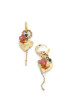 Boucles clic créoles pendantes, double anneau torsadé, pampilles cœur, perles & chaîne à boules