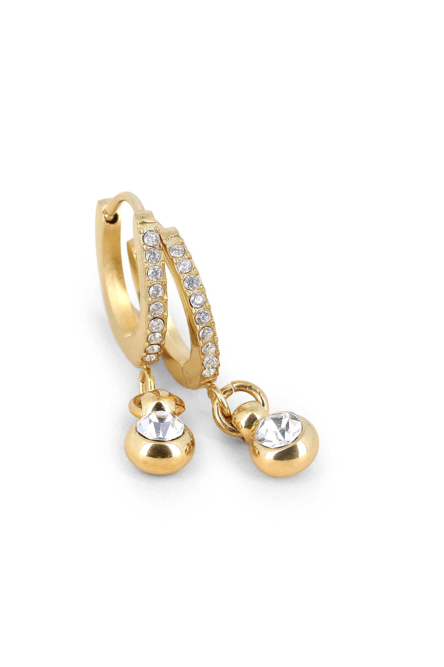 Boucles créoles pendantes cristaux & pampille boule strass