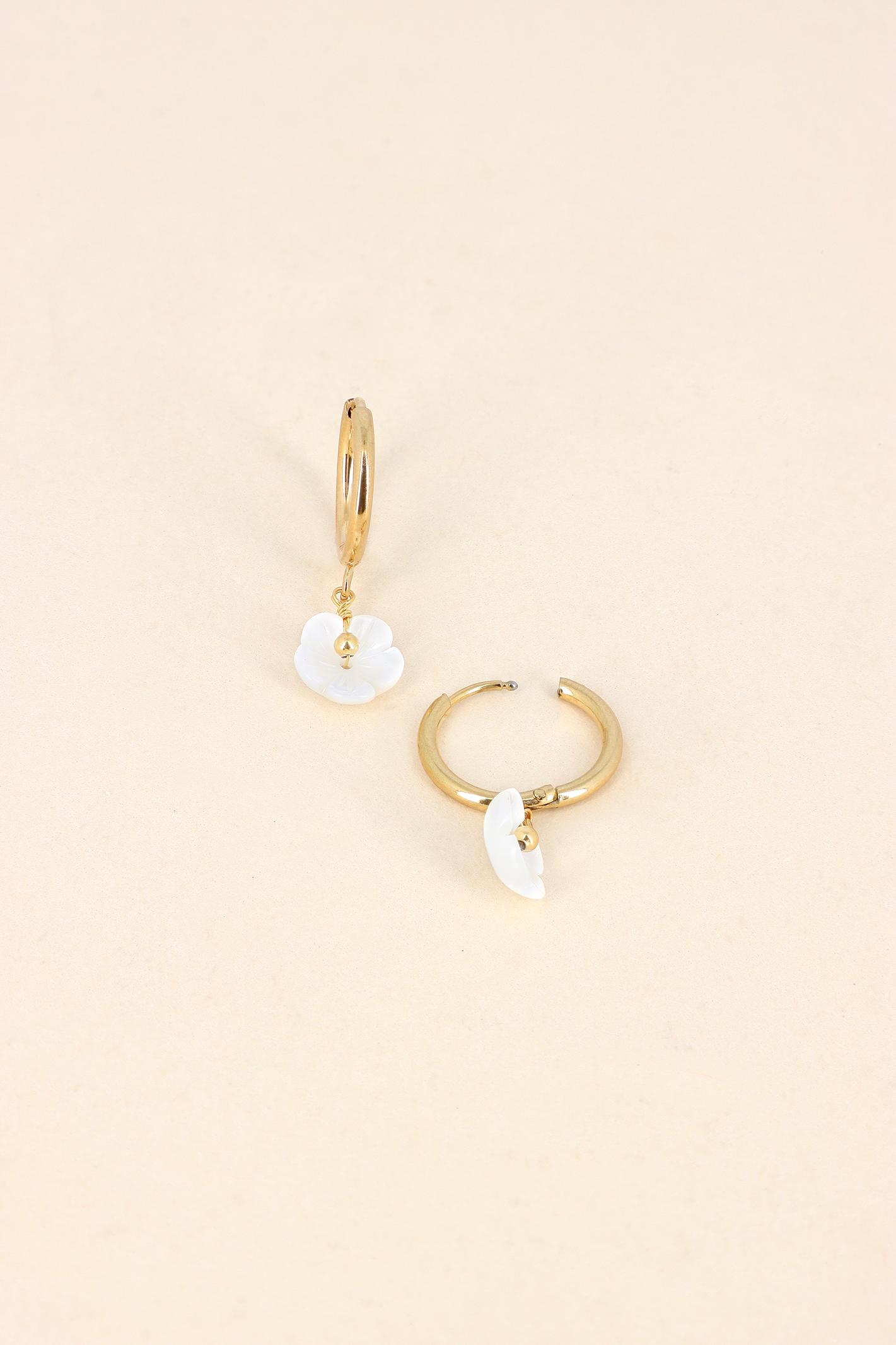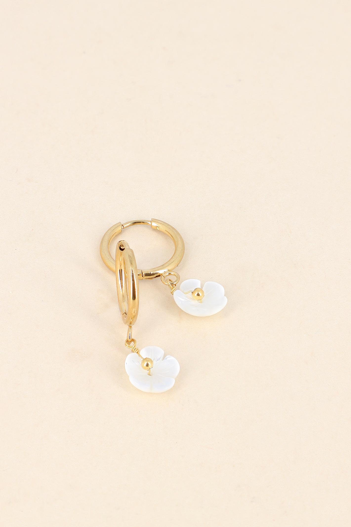 Boucles créoles pendantes pampille fleur de nacre