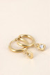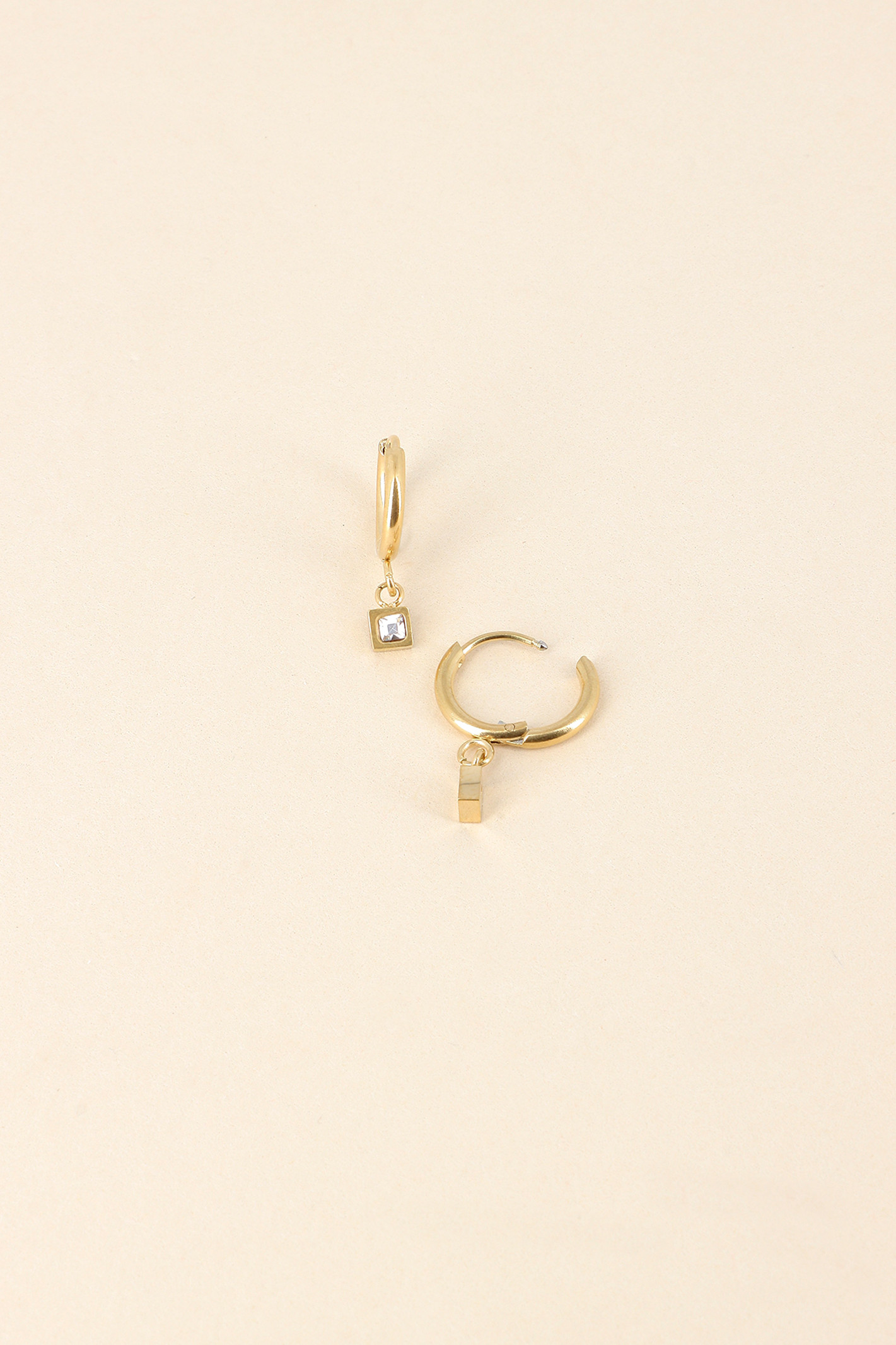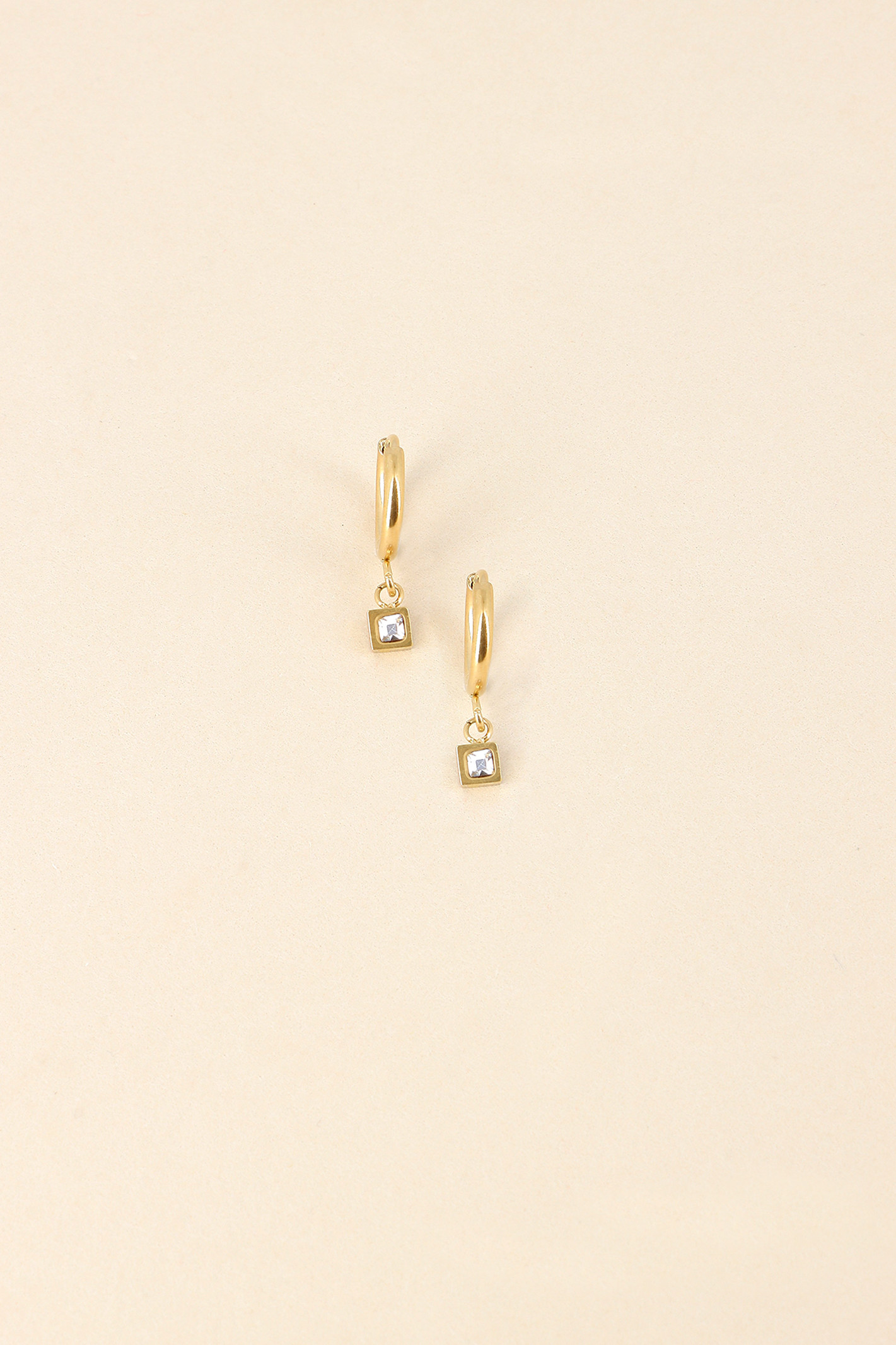 Boucles créoles pendantes pampilles carrées avec pierre colorée