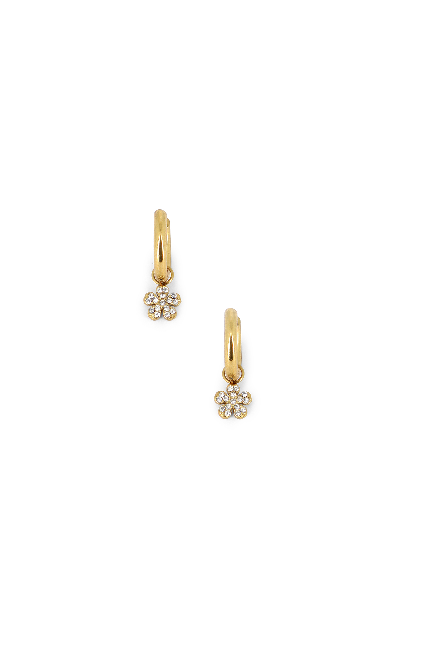 Boucles créoles clic pendantes & pampilles fleur de cristaux