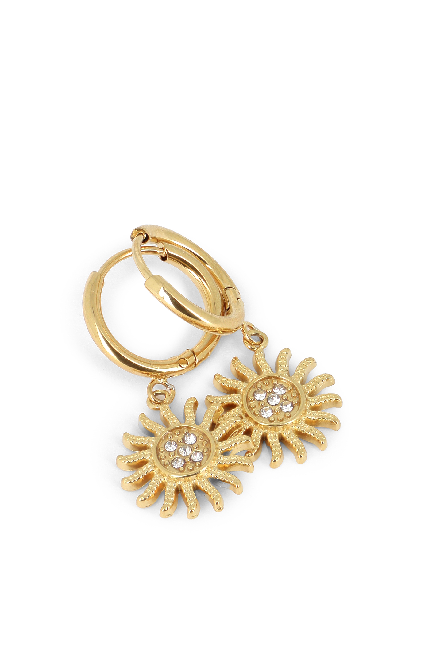 Boucles créoles clic, pampilles soleils de cristaux