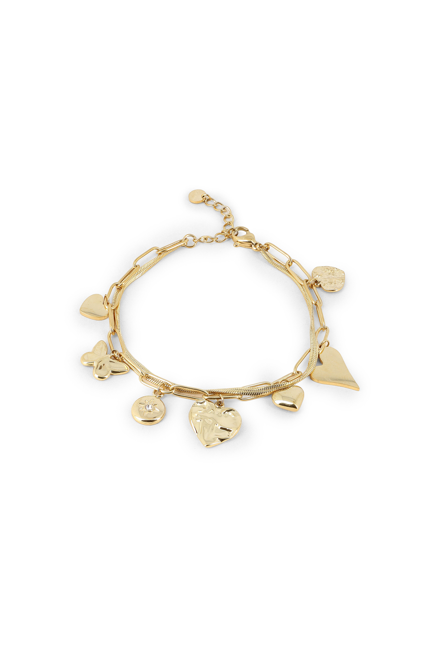Bracelet double chaîne, maille serpent, pampilles cœurs & étoile cristal