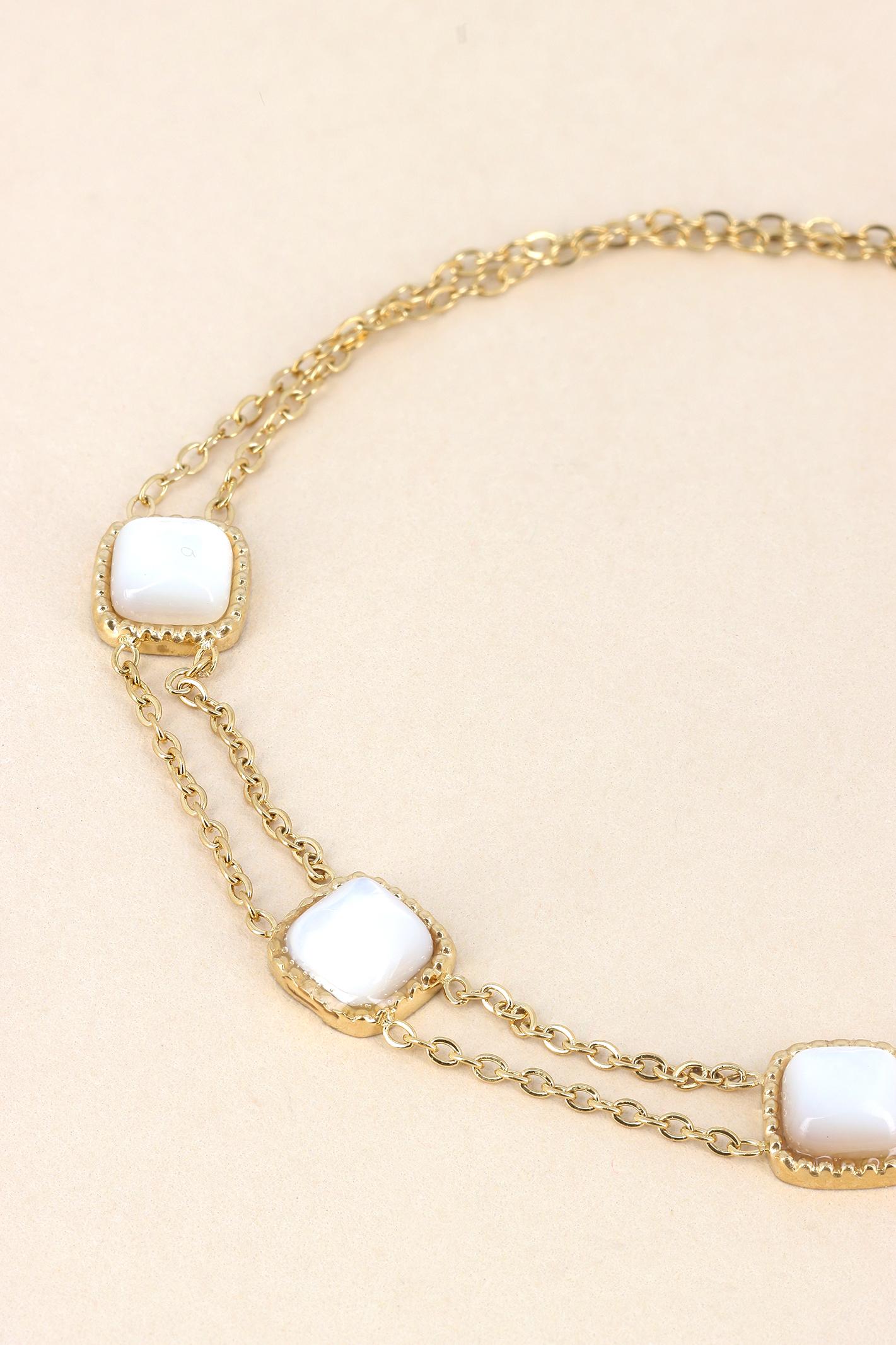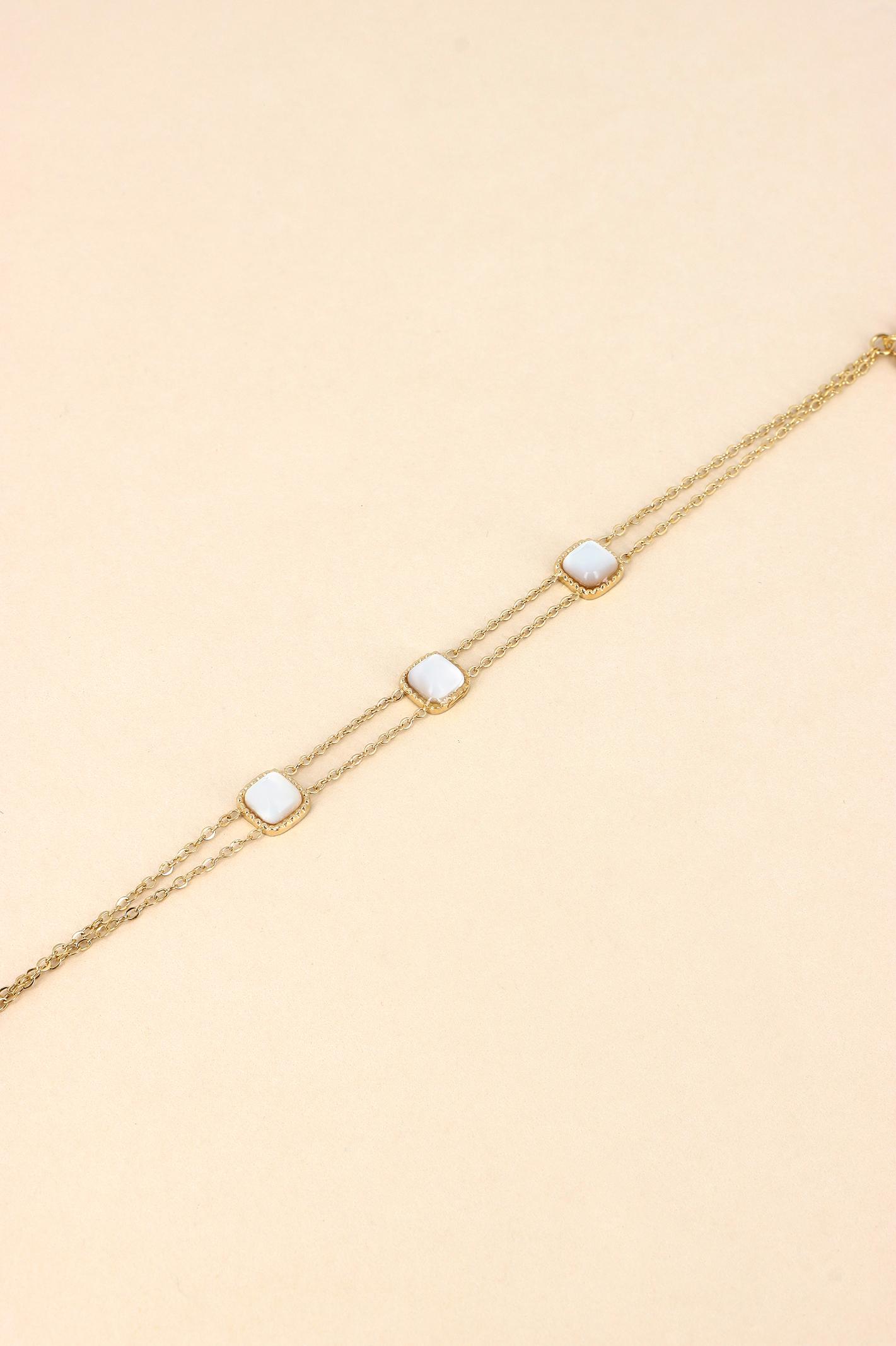 Bracelet double rangs avec pierres colorées dans cabochons carrés