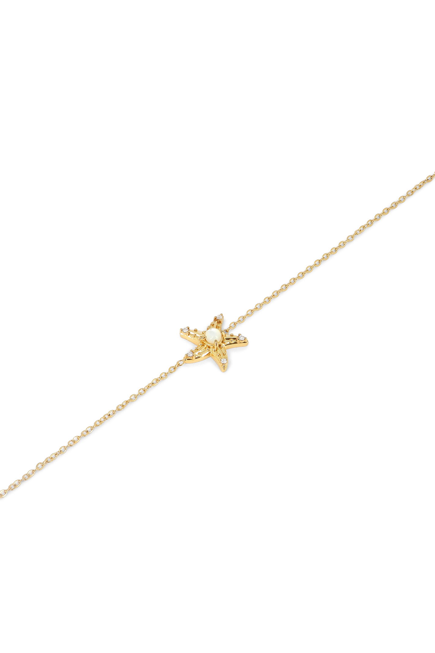Bracelet chaîne fine, station étoile de mer avec perle & cristaux