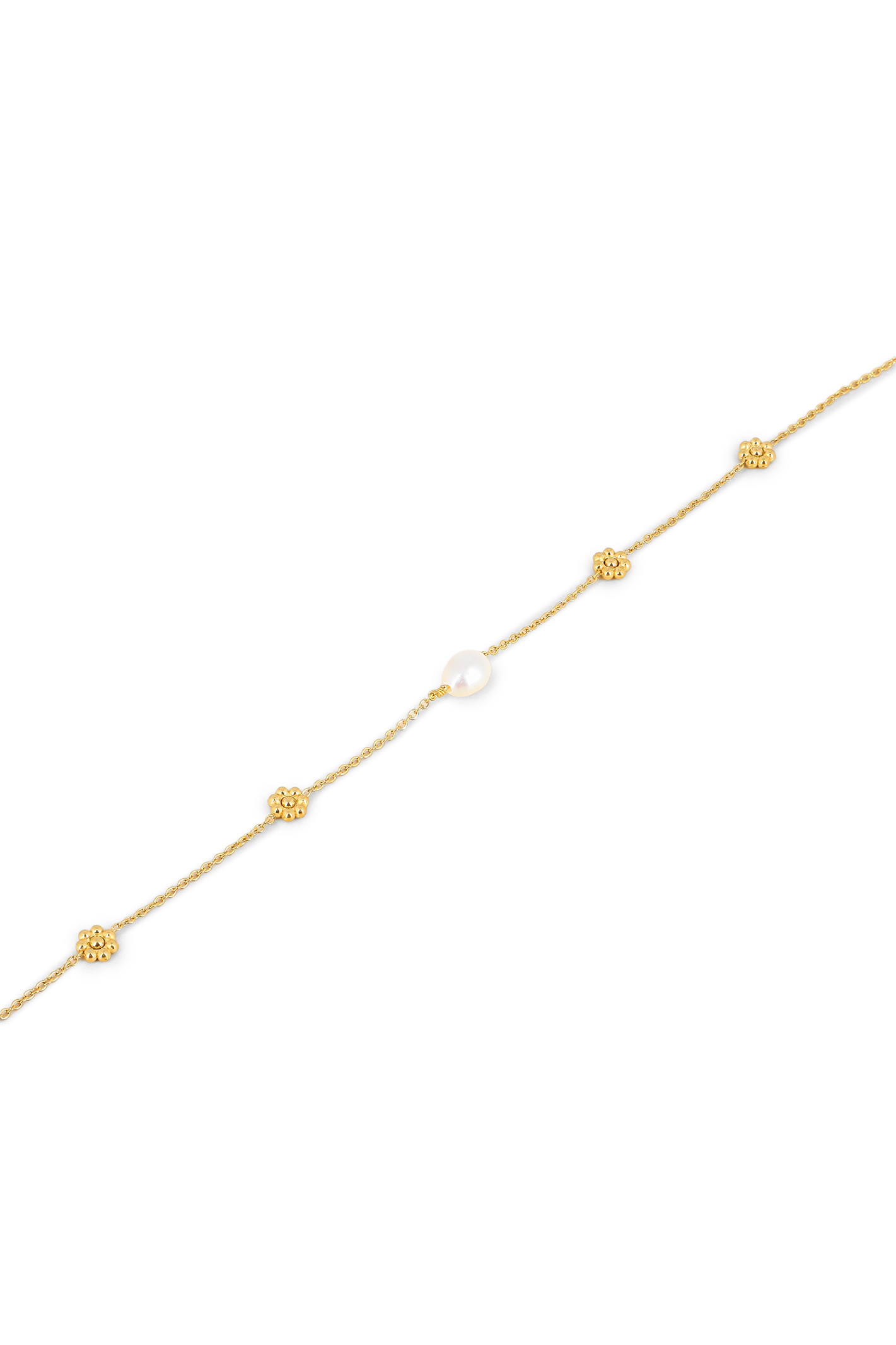 Bracelet chaîne fine, boules fleurs & perle d'eau douce
