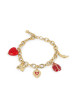 Bracelet chaîne émail peint, pampilles coccinelle, fleurs, croissant de lune, cœur, ex-voto & cristaux