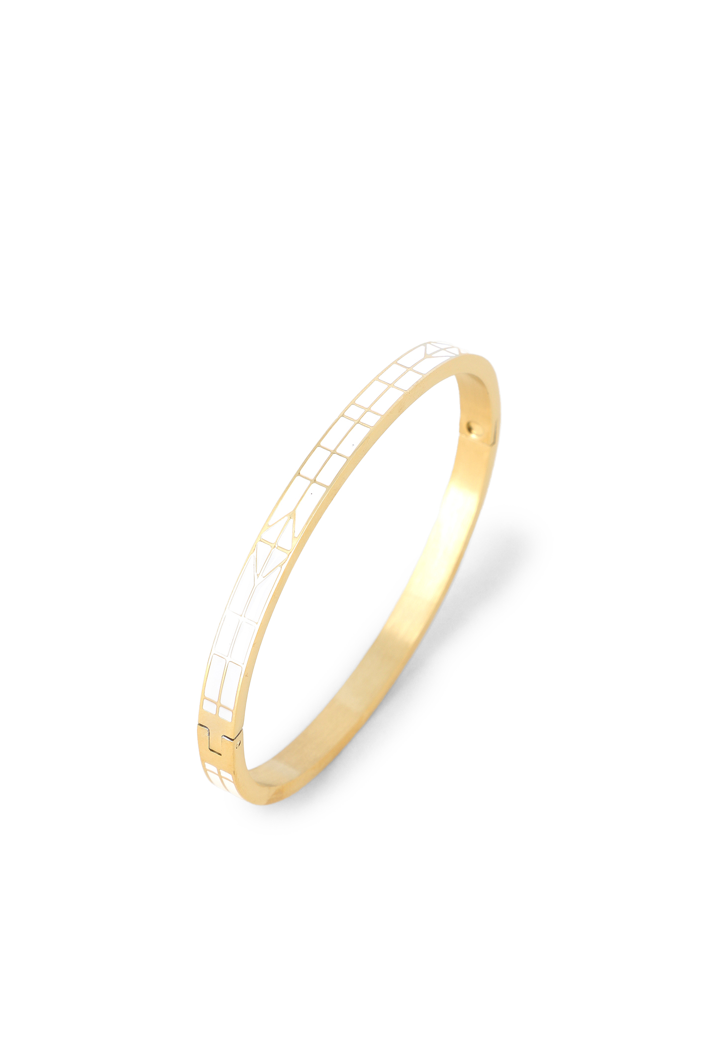 Bracelet jonc fermé émail peint motif géométrique
