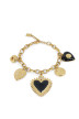 Bracelet chaîne pampilles cœurs émail peint, breloque, médaillon papillon & feuilles de cristaux