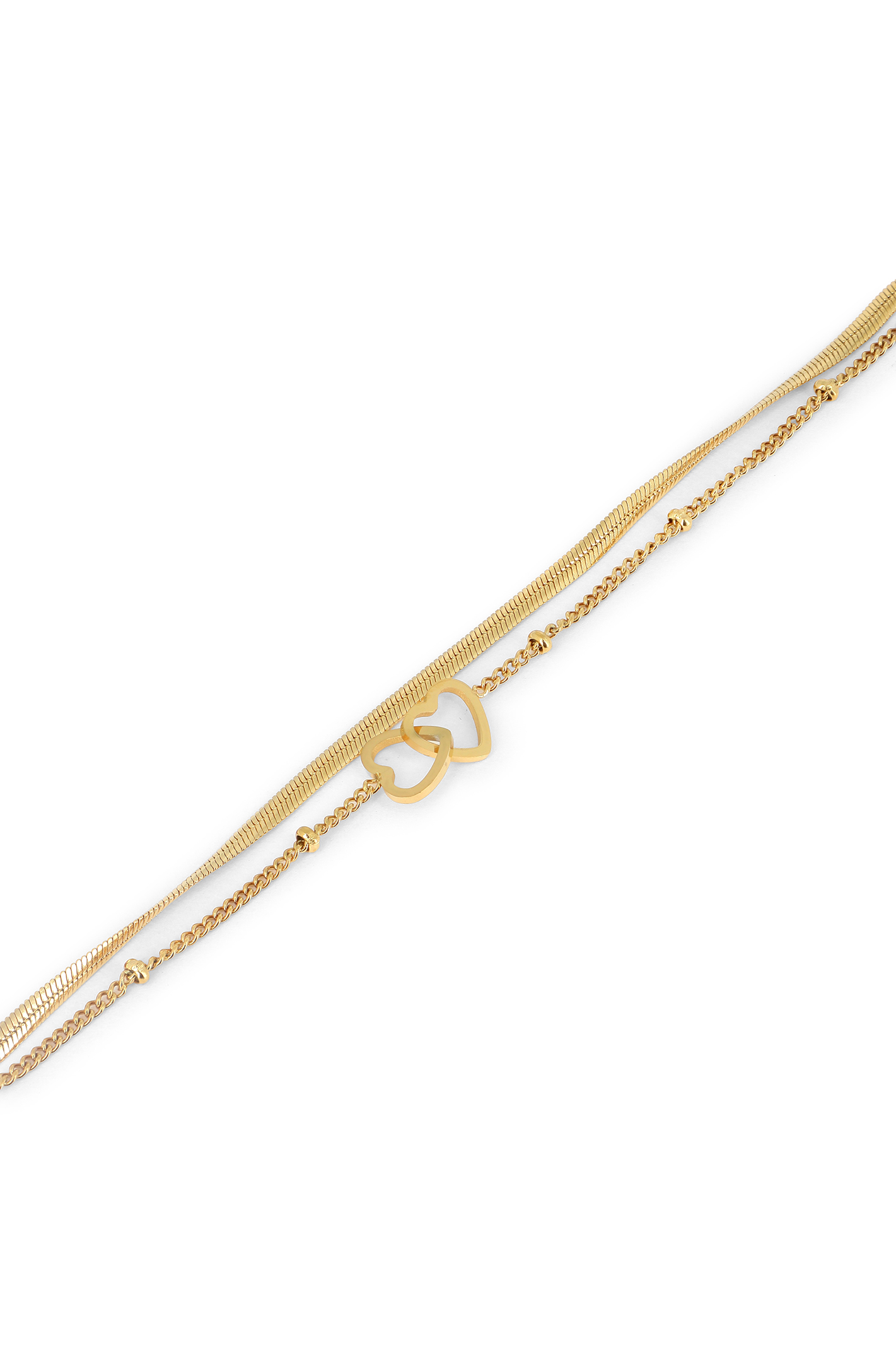 Bracelet multi rangs, maille serpent, chaîne boule & deux cœurs enlacés