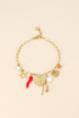 Bracelet chaîne pampilles médaillons, cœur, étoile, corne d'abondance & perles d'eau douce