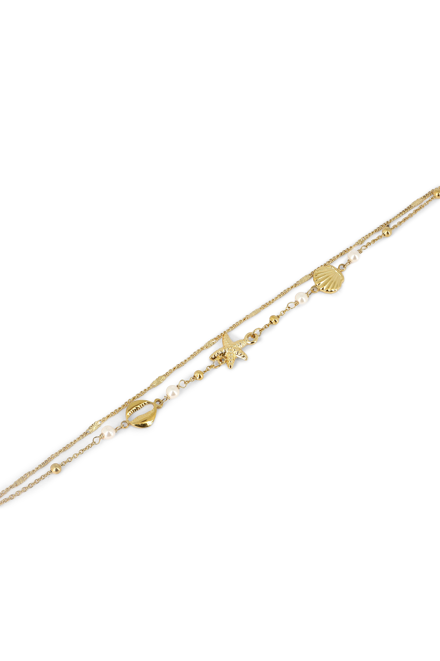 Bracelet double rang chaîne boules, stations étoile de mer, coquillages & perles