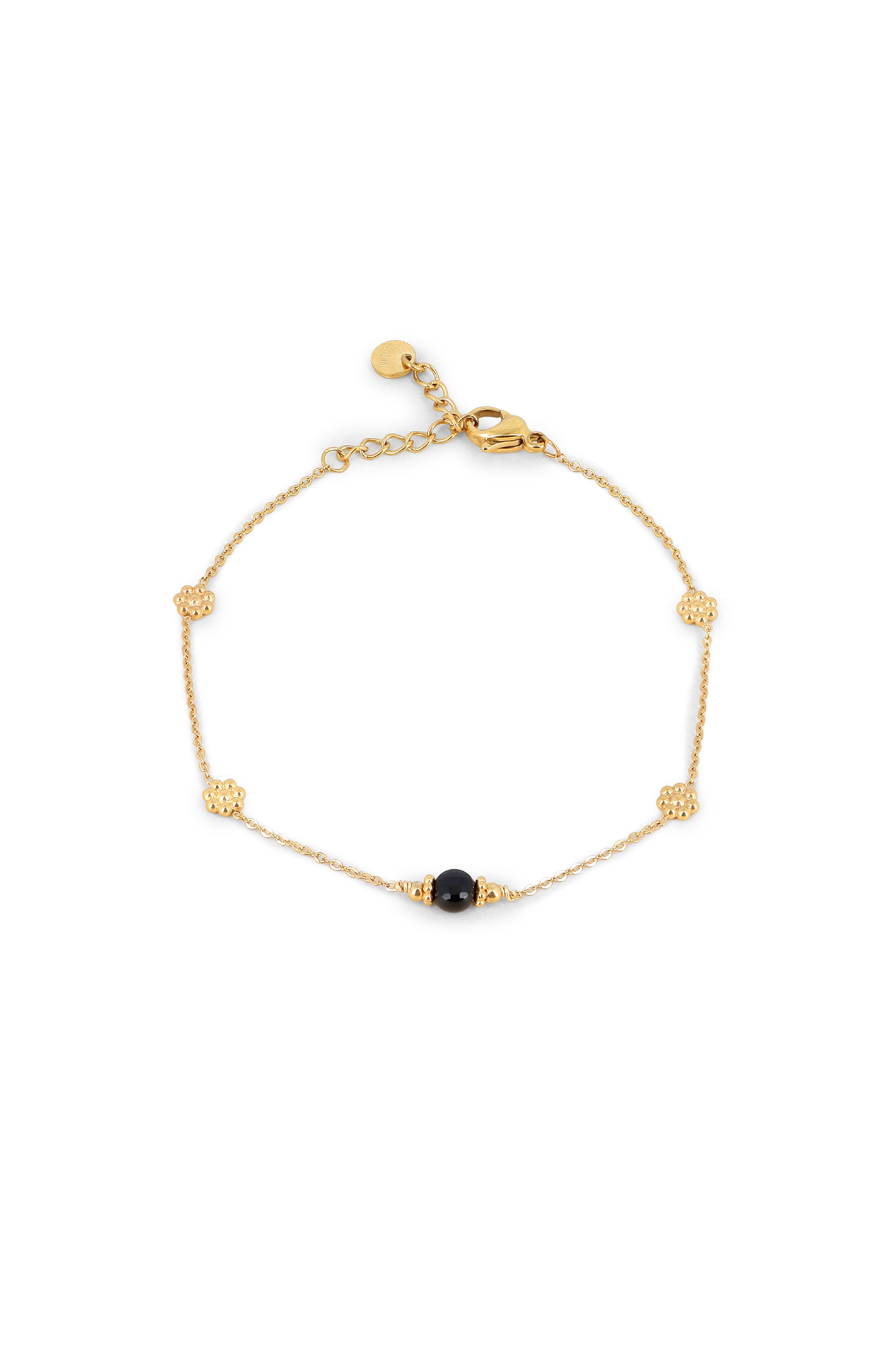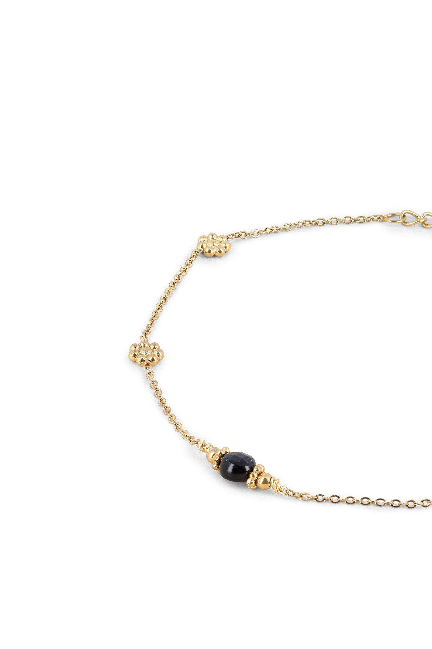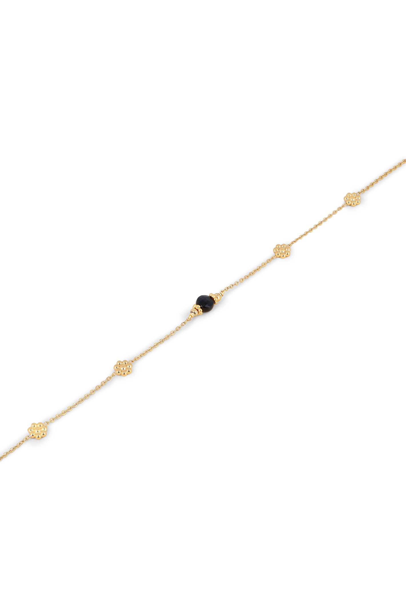 Bracelet chaîne fine, fleurs petites boules & pierre ronde
