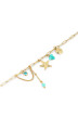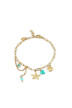 Bracelet maille trombone, pampilles étoile de mer, coquillage, perles colorées, chaîne & rond de cristal