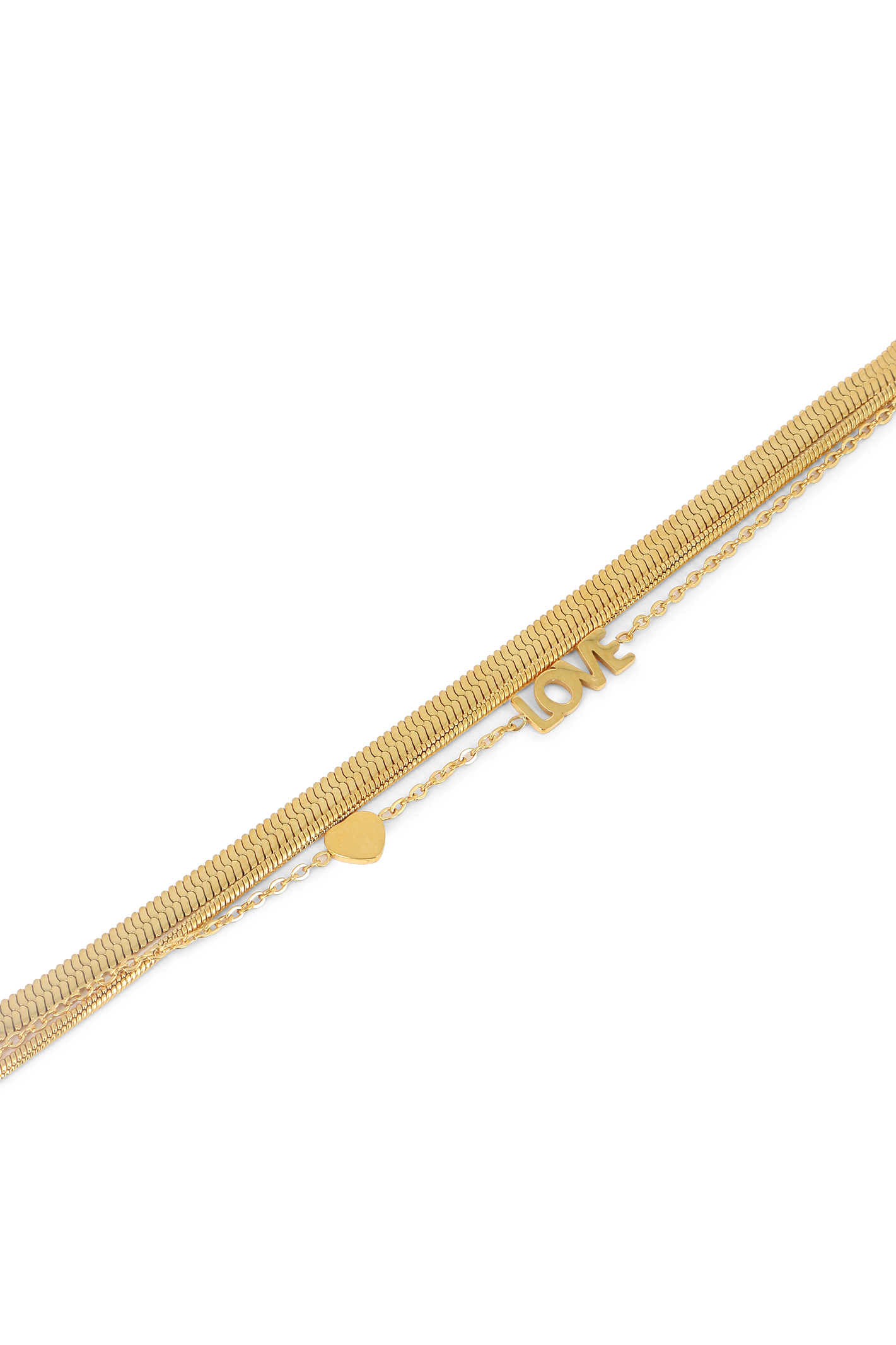 Bracelet multi rangs, deux mailles serpent & chaîne cœur, love