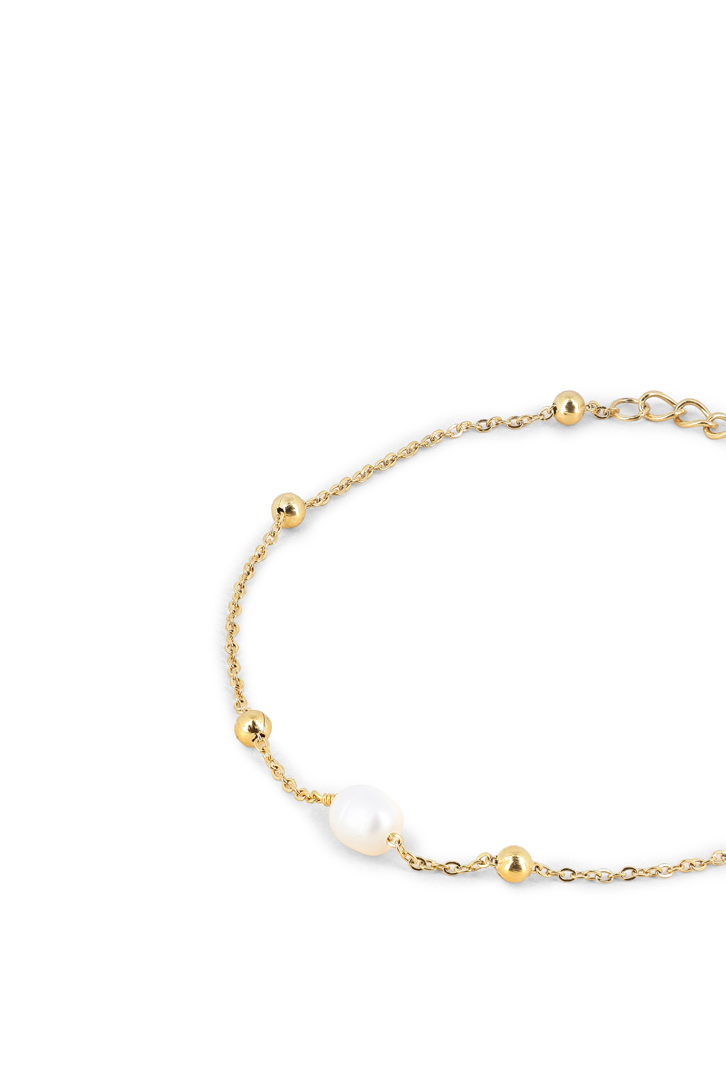 Bracelet chaîne fine, petites boules & perle d'eau douce