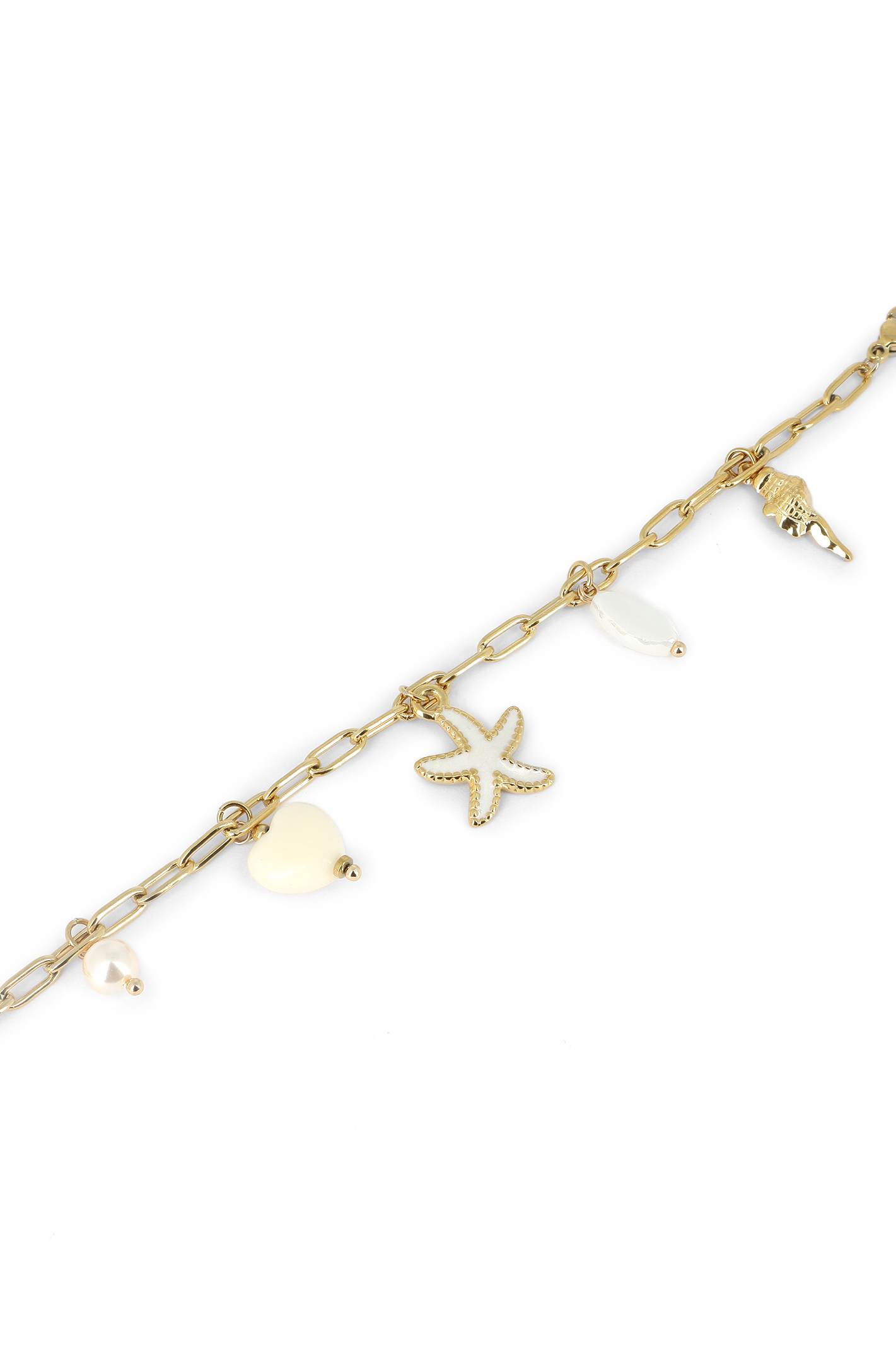 Bracelet maille plate, pampilles coquillage, étoile de mer & perles