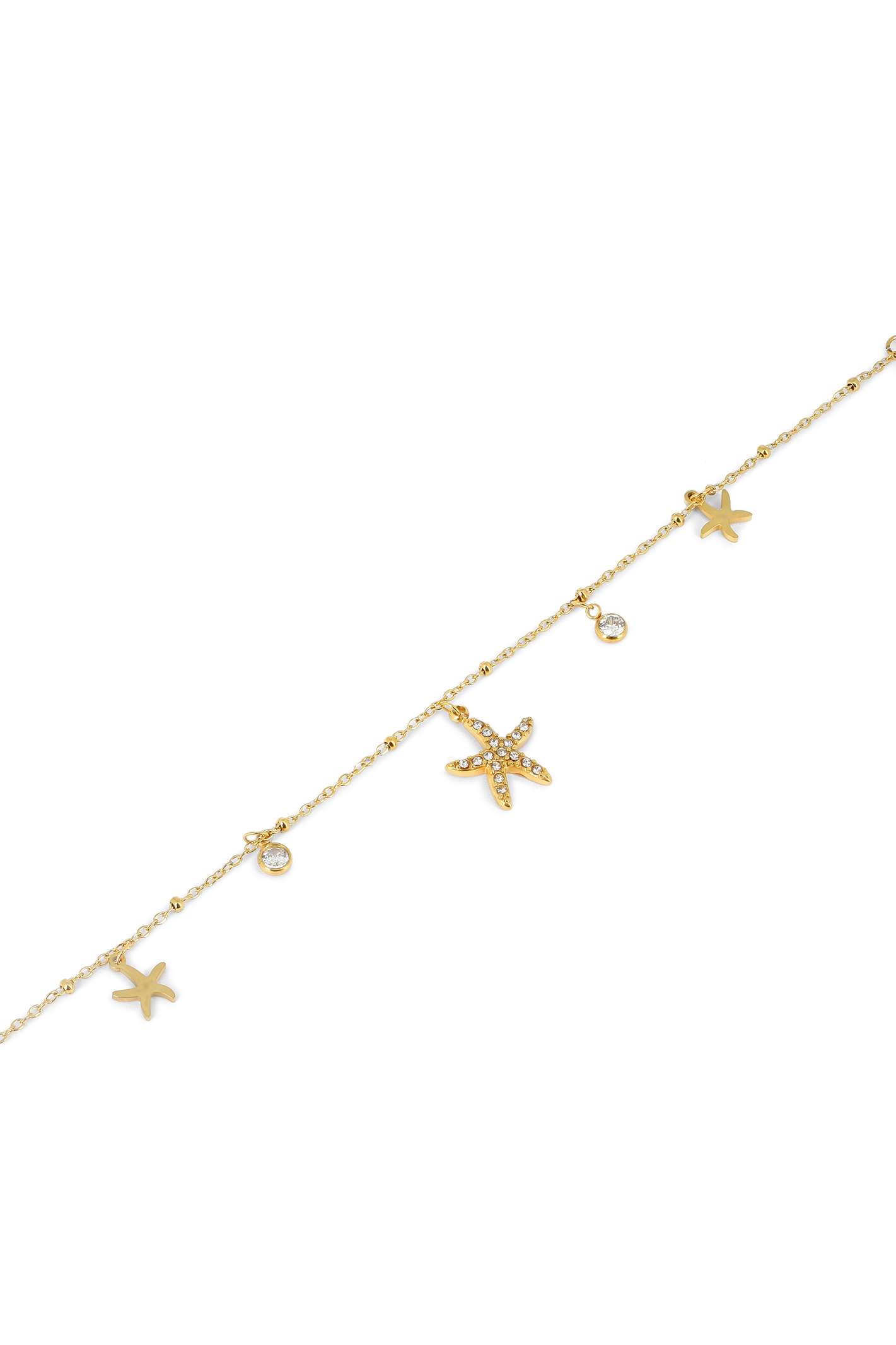Bracelet chaîne fine, pampilles étoile de mer & cristaux