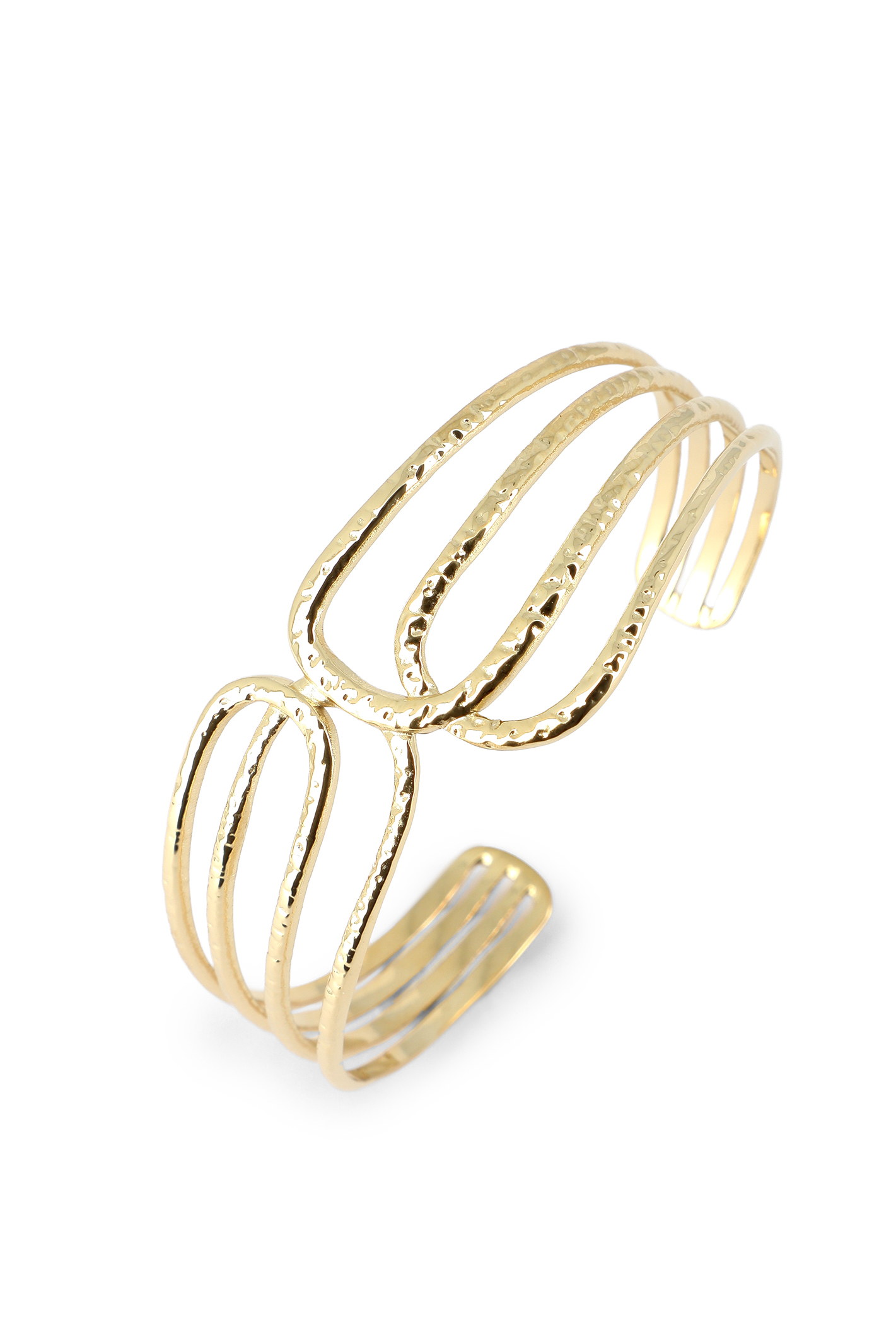 Bracelet jonc ouvert martelé & gouttes creuses croisées