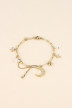 Bracelet chaîne grande maille plate, pampilles étoile, lune, fleur, coeurs, perles d'eau douce & cristaux