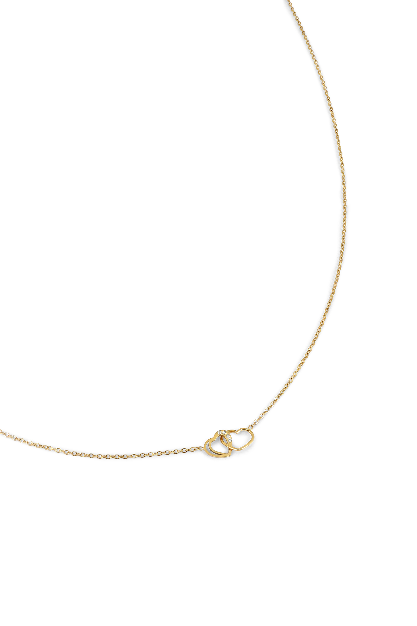 Collier chaîne fine deux cœurs creux entrelacés & cristaux