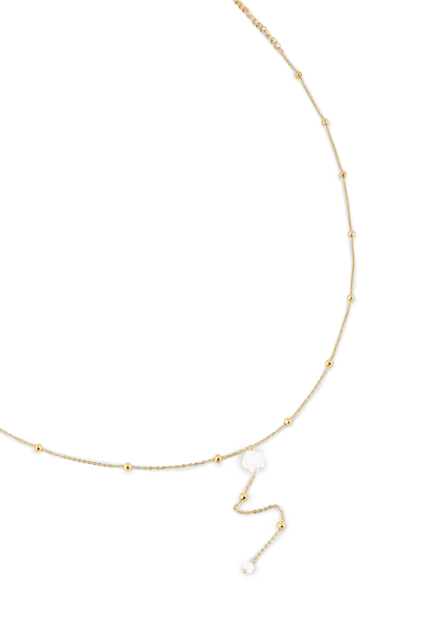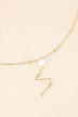 Collier Y chaîne fine maille boules, perle & pampille fleur de nacre
