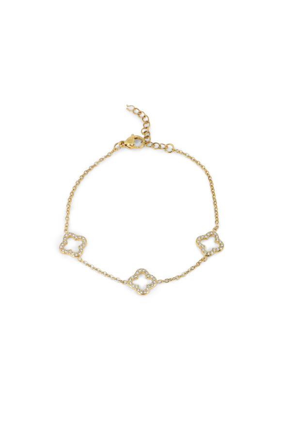 Collier sautoir, maille fine, stations grands & petits trèfles creux
