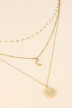 Collier multi rangs chaînes, boules blanches, pendentifs croissant de lune, médaillon & cristaux