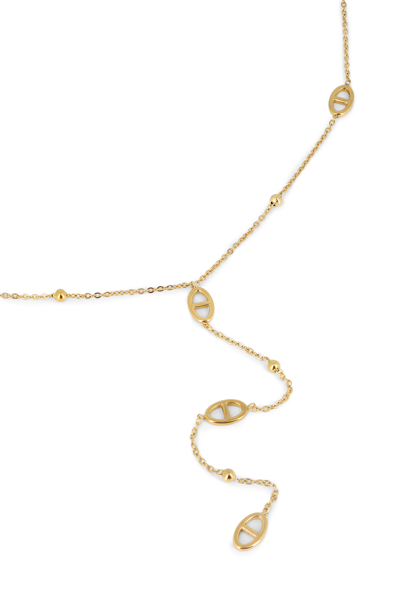 Collier Y maille marine & chaîne boules