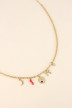 Collier chaîne maille large, pampilles corne d'abondance, soleil, lune & nœud