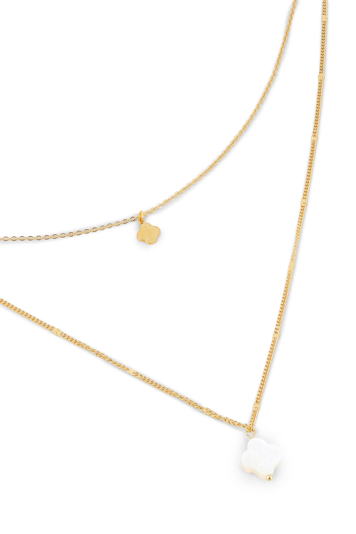 Collier double chaîne trèfle & trèfle de nacre
