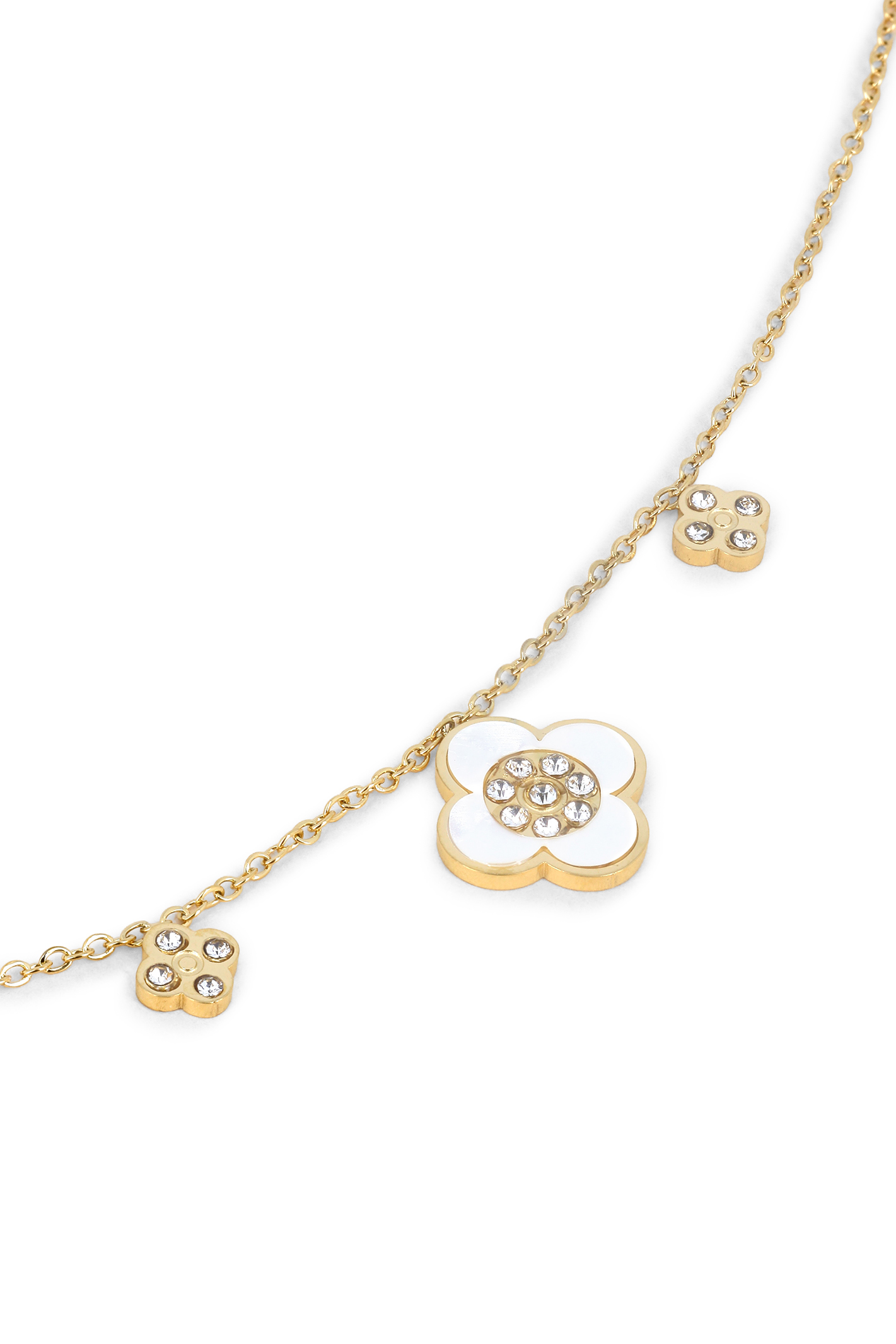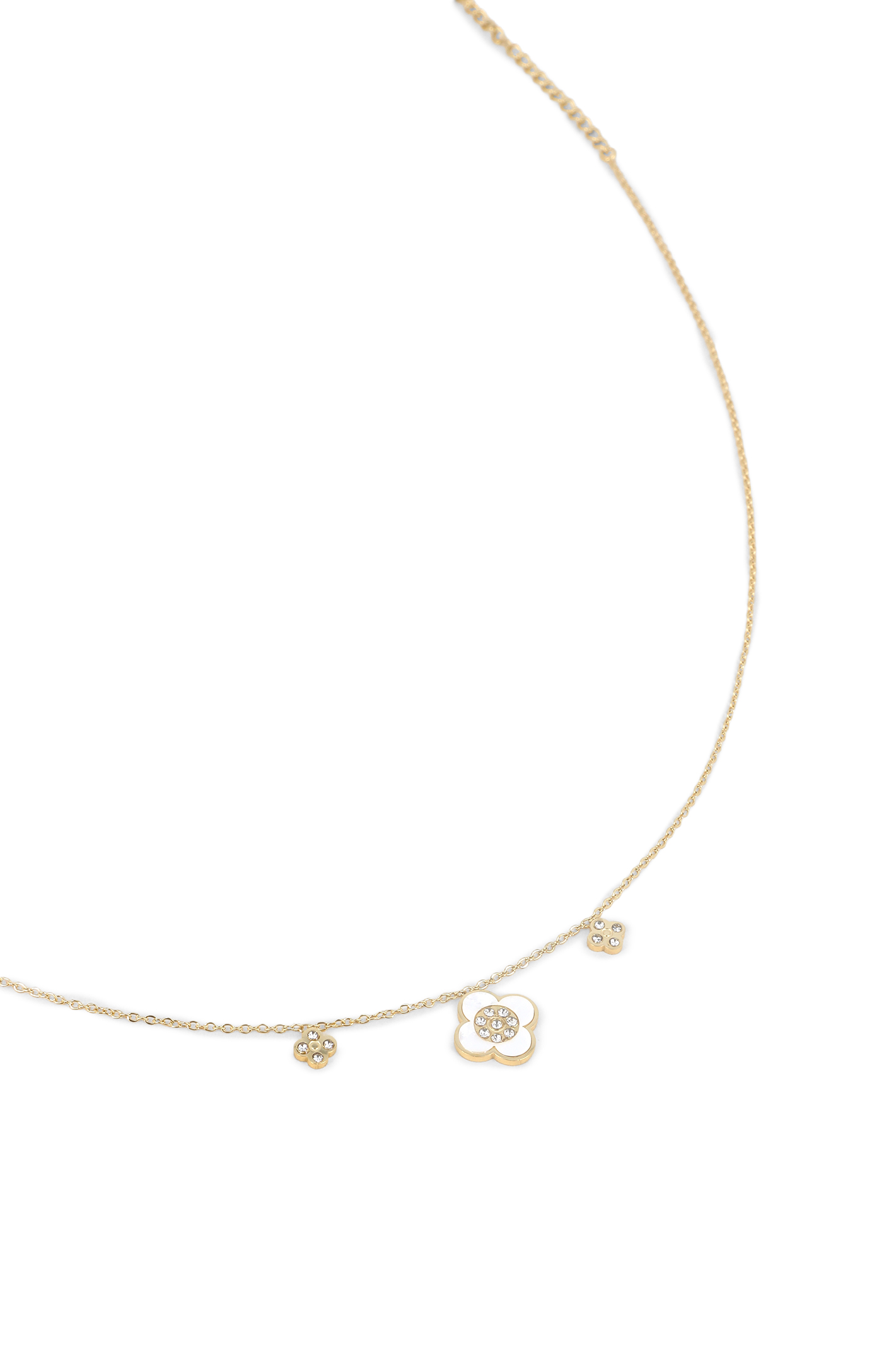 Collier chaîne trois fleurs cristaux et nacre