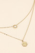Collier chaîne double pendentifs rond creux, perle & fleur
