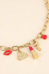 Collier chaîne pampilles rouge à lèvres, escarpin, sac, bouche & cœur