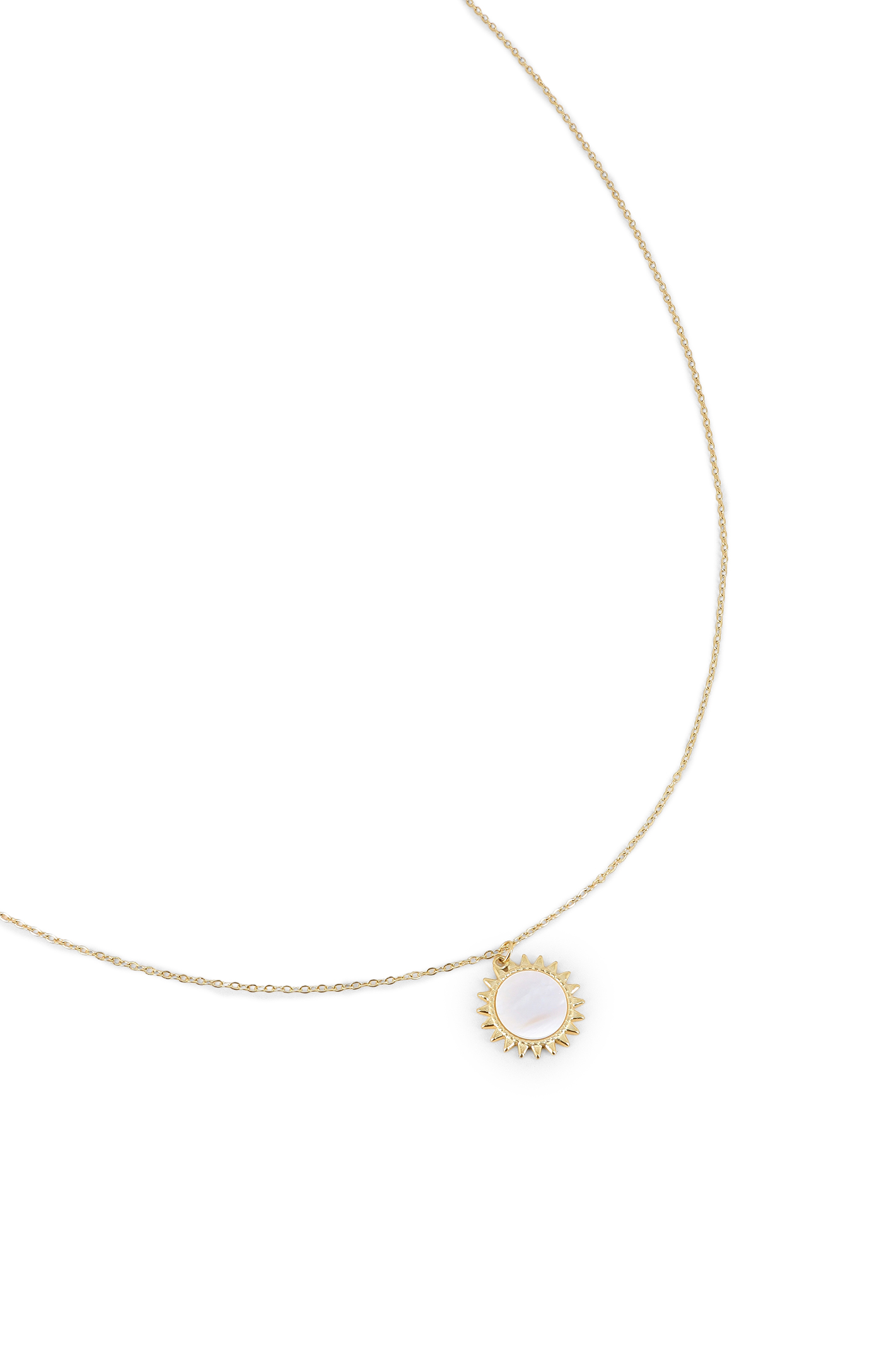 Collier chaîne fine & pendentif soleil de nacre