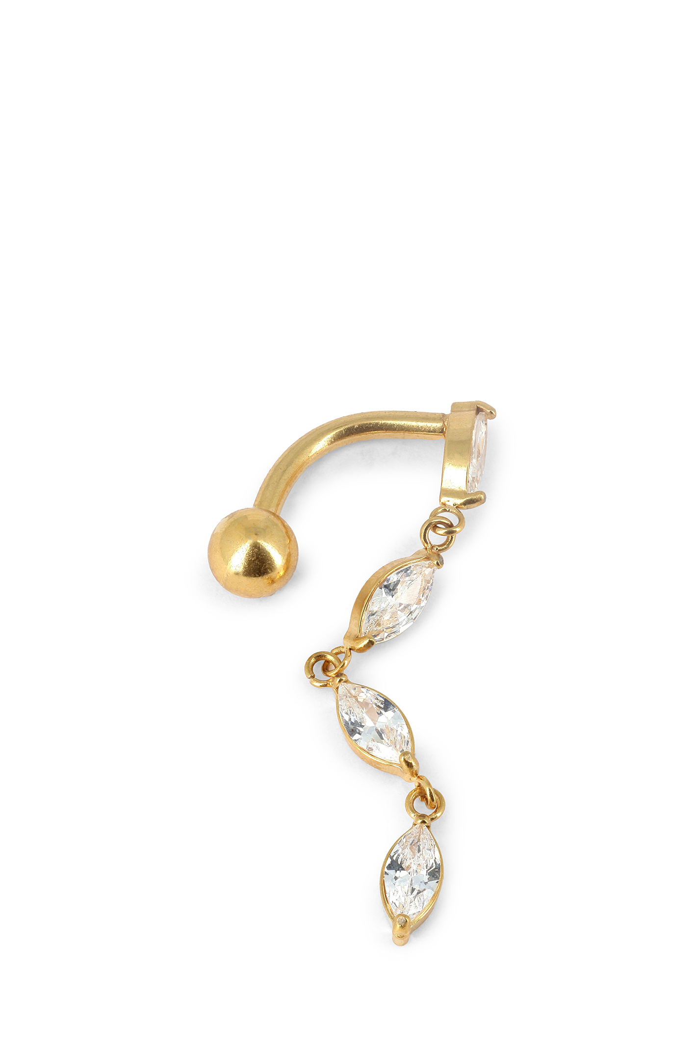 Piercing nombril inversé, quatre pendentifs gouttes de cristaux
