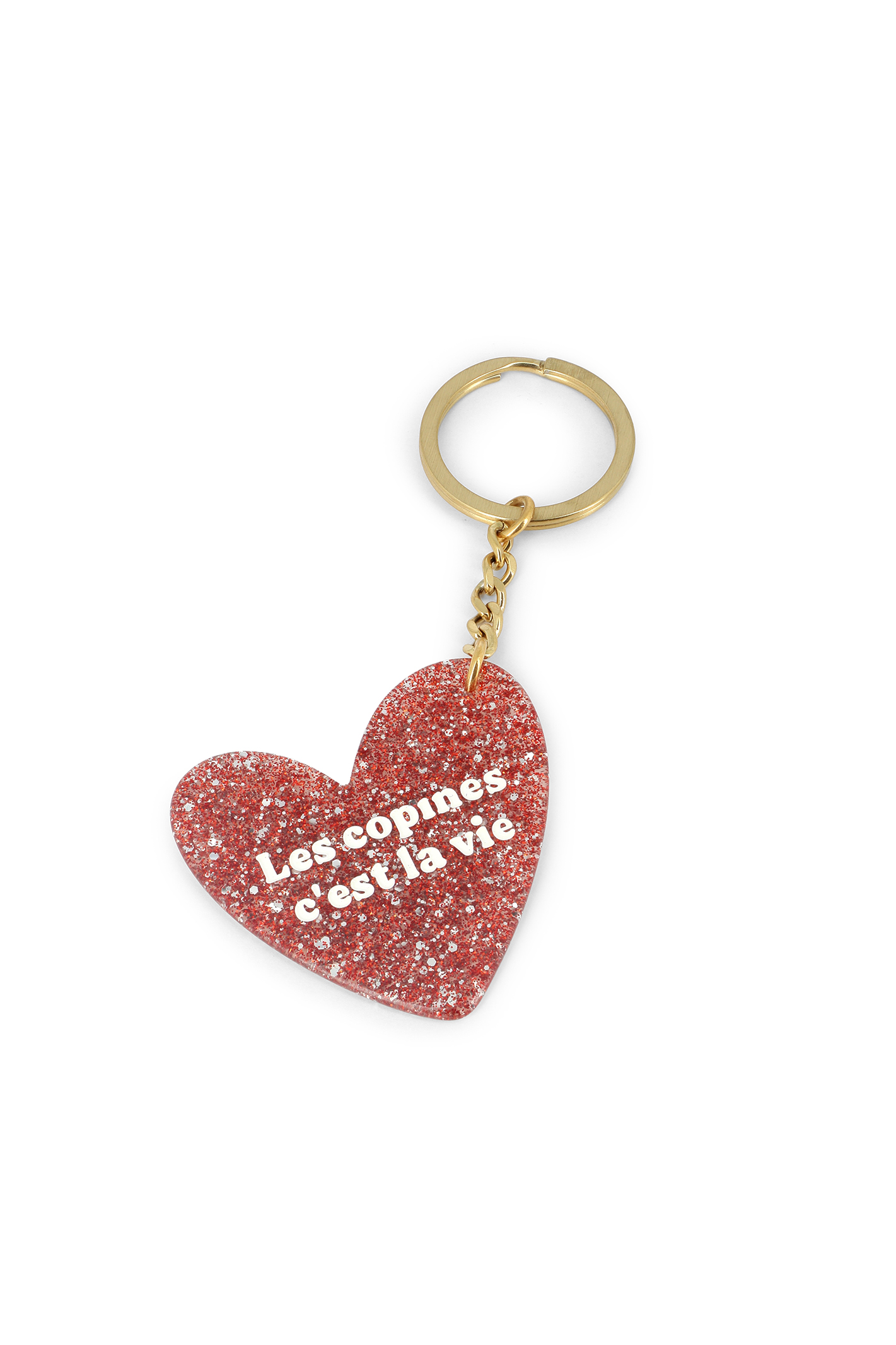 Ajoutez une touche d'amitié à paillettes à votre trousseau avec le porte clés Les copines c'est la vie !